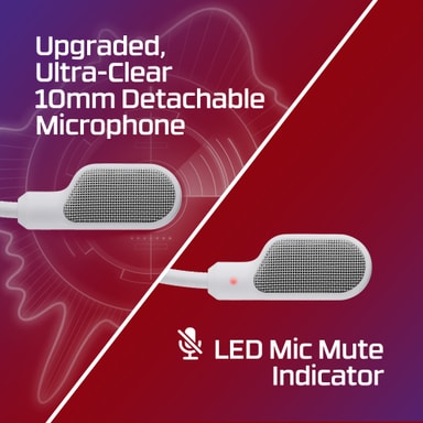 Den 10 mm elektret kondensatormikrofonen är designad för att vara ultratydlig och har ett inbyggt brusreducerande filter för att minska bakgrundsljud. Den är också avtagbar och inkluderar en praktisk LED-indikator för tyst läge.
