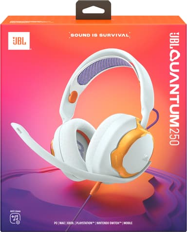 JBL Quantum 250 gamingheadset levererar uppslukande ljud med 50 mm koldynamiska element, JBL Quantum Spatial Sound och en kardioidstyrd brusreducerande bommikrofon som säkerställer tydlig kommunikation och komfort på alla plattformar.Läs mer om produkten