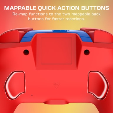 Rematch Wireless har responsiva ansiktsknappar, en pålitlig D-pad och två programmerbara bakre knappar för anpassade genvägar. Den inkluderar en dedikerad funktionsknapp för direkt omprogrammering och en synkroniseringsknapp på ovansidan.