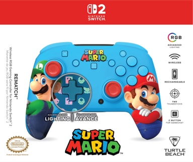 • Turtle Beach Rematch Switch 2 Mario & Luigi trådlös kontroll