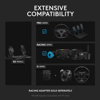 Logitech G RS racingpedaler förbättrar din simracing-upplevelse med en 75 kg lastcellsbroms, Hall Effect-gasreglage, justerbar positionering och robust stålram, vilket säkerställer precision och kompatibilitet över alla större plattformar.Läs mer om produkten