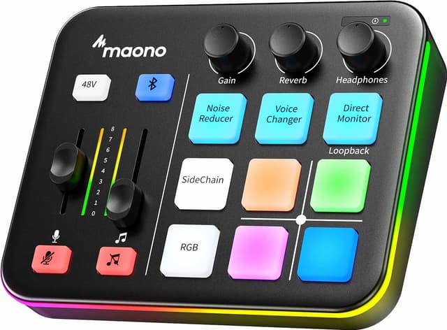 Maono G1 NEO ljudmixer är designad för kreatörer i rörelse. Den har brusreducering, justerbar reverb och tonkontroller för att hålla din röst klar och polerad. Lätt och enkel att använda, fungerar den sömlöst med smartphones och datorer för streaming, poddande eller mobil inspelning.