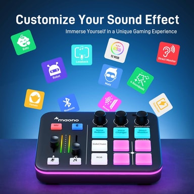Maono G1 NEO har 4 anpassningsbara ljudknappar som låter dig lägga till effekter, jinglar eller samplingar för att göra dina inspelningar och streams roligare och mer engagerande.