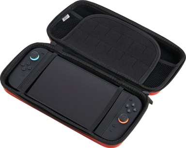 Numskull Fortnite Peely vs Fishstick Switch 2-fodral har ett härdat ytterskal och mjukt innerfoder för skydd mot fall. Det inkluderar en flik för 10 spelkassetter, en nätficka för tillbehör och ett stabilt gummihandtag för enkel och säker transport.Läs mer om produkten