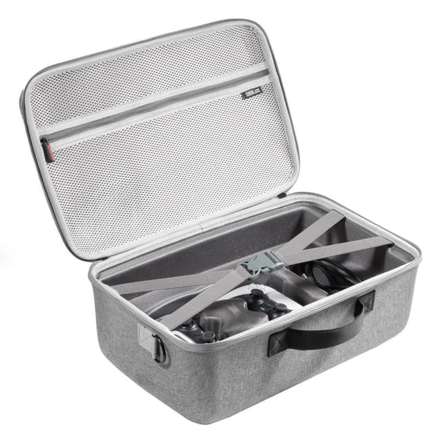 Den kan lagra spelkonsolen, 2 handhållna kontroller, spelskivor och datakablar, alla tillbehör är organiserade i en väska