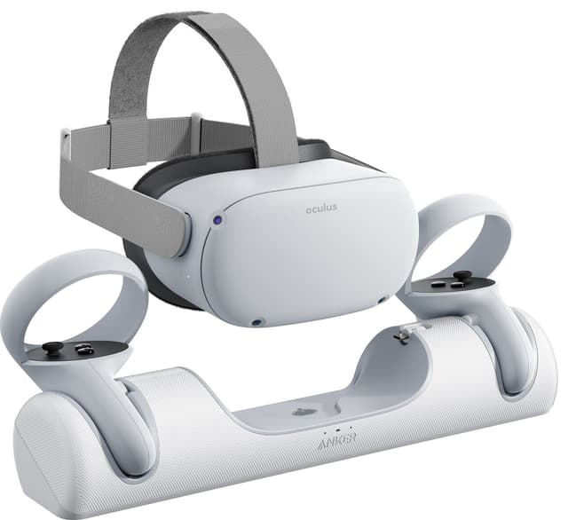Med Anker Meta Quest 2 laddstation är du alltid redo för en VR-spelsession. 2-i-1-laddstationen kan hålla och ladda ditt Meta Quest 2-headset och dess två kontroller. Laddstationen är också officiellt certifierad för att fungera felfritt med Quest 2.