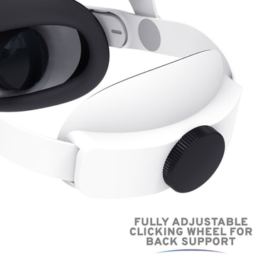 ""Enhanced head support and headset balance for your Meta Quest 2. Fully adjustable clicking fit wheel for a more comfortable and stable fit for all users.