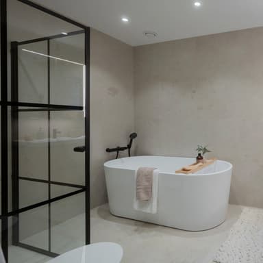 Duschdörrar Tiana – Industriell stil för hem och stuga. Tiana erbjuder ett set med två rejäla duschdörrar i 6 mm härdat glas, med snygga svarta rutor som ger en modern och industriell känsla i badrummet.