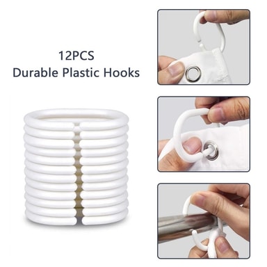 【Enkel installation】 Inkluderar 12 plastkrokar för gardinerna för snabb och problemfri installation i ditt badrum.