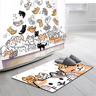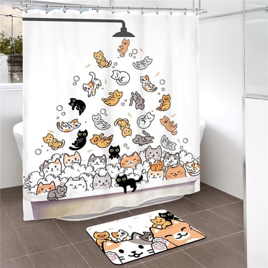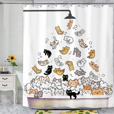 Tecknat djur duschdraperi 180 x 180 cm vattentät polyester badrumsavdelare med 12 krokar - Katter