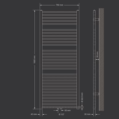 Handduk ingår med universalanslutning anslutningsuppsättning. Termostat i krom