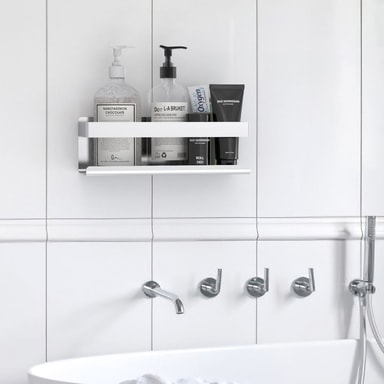 Den moderna och enkla designen gör att hyllan passar väl in i din övriga badrumsinredning och de rundade kanterna skyddar mot obehagliga repor på huden.