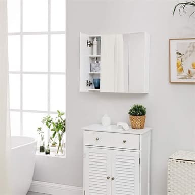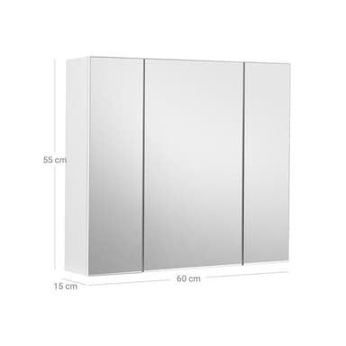 Spegelskåp med 3 spegeldörrar och justerbara hyllor - Vit