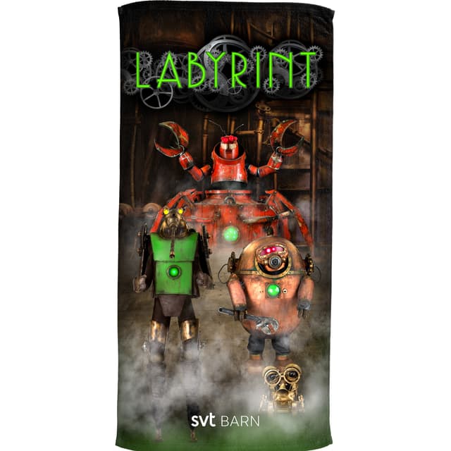 Labyrint är ett tävlingsprogram på SVT:s Barnkanalen som har varit en favorit sedan 2012! Alla robotar som medverkar i serien är enormt populära och nu kan vi med glädje presentera en produkt i "familjen". Denna handduk är tillverkad i 100% bomull och fångar känslan från programmet på ett lysande sätt!