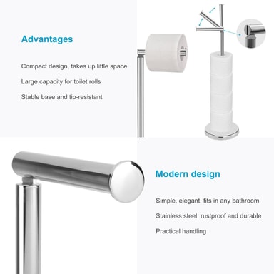Med det här praktiska stativet behöver du inte borra några hål i kakelplattorna eftersom det är fristående. Med sin tidlösa, blanka design är den ett blickfång i alla badrum och toaletter.