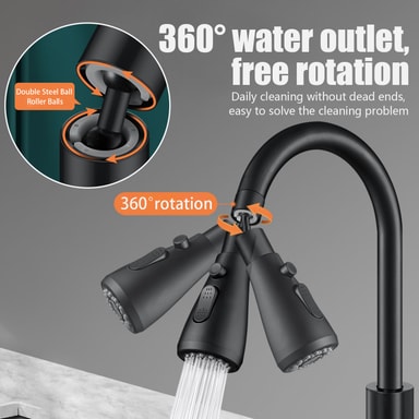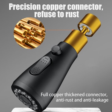 Bättre vattentryck och mindre stänk: Köksduschen är utrustad med en inbyggd booster som ökar vattentrycket. Kranmunstycket ger ett kraftfullt och kontrollerat vattenflöde samtidigt som det blir mindre vattenstänk.