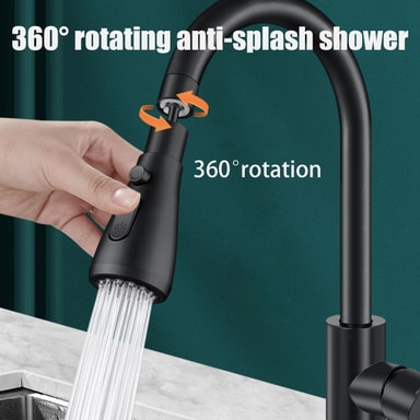Fullt flexibelt vridbar: Köksduschen förlänger kranen och möjliggör att rikta vattenstrålen exakt dit du vill. Ett vridbart munstycke till vattenkranen underlättar disk och rengöring och är dessutom en vattensparande lösning, eftersom mindre vatten går till spillo.