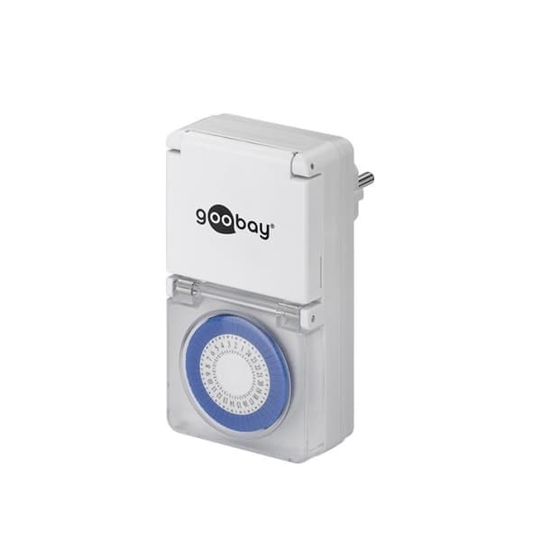 Goobay - ip44 analog timer slår på eller stänger av enheter i 30-minuters intervaller upp till 48 gånger om dagen. Max. Omkopplingskapacitet - 3500 w driftspänning - 230 v (ac) strömförbrukning i standby - 1 w enhetsanslutningar utgång, max. Strömstyrka - 16 a skyddsklass - ip44 apparatklass - i