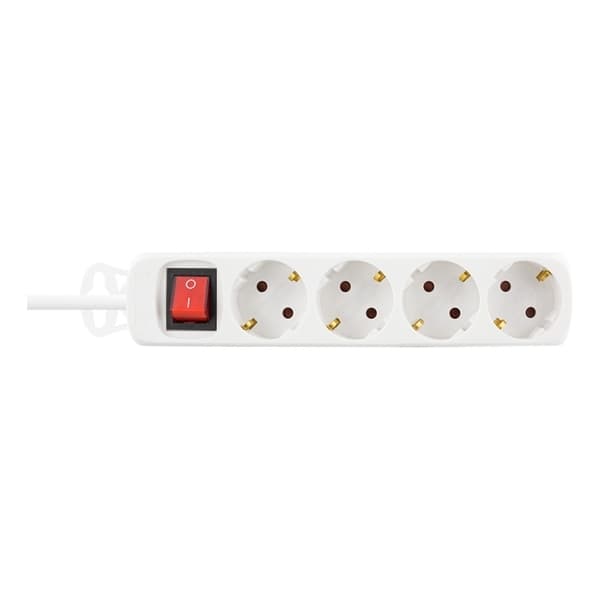Grenuttag med strömbrytare, 4xcee 7/4 deltaco grenuttag med strömbrytare och 4xcee 7/4 uttag, 1xcee 7/7 anslutning, 1,5m kabel, vit grenuttag med 4st uttag och strömbrytare. • 3680w max • petskydd mått (bxdxh): 265x42x45mm (med örat inkluderat) vikt: 363g