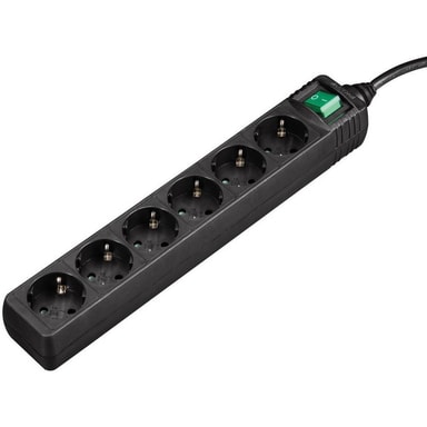 Hama 121916 Förgreningsdosa med brytare 6x Svart SkyddskontaktVägguttagsinsatser på 45° vridna · 2-polig, grön belyst brytare · GS-testad · · OBS! Vi beklagar att vi inte har hunnit översätta denna produkttext. Texten nedan är maskinöversatt från