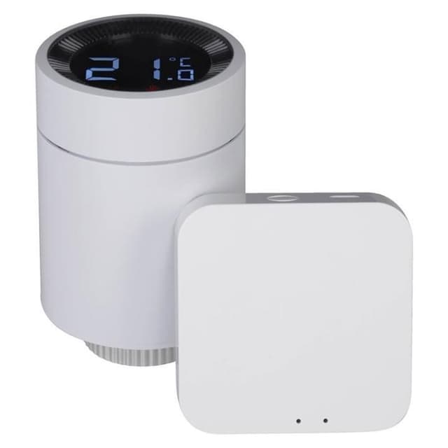 1x Smart Radiator Valve, 2 x AA-batterier, Ventilanslutningstillbehör, Micro USB-kabel,
