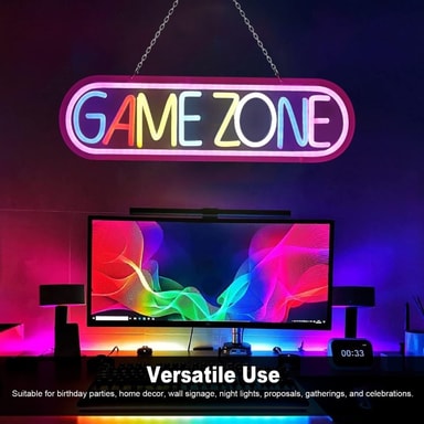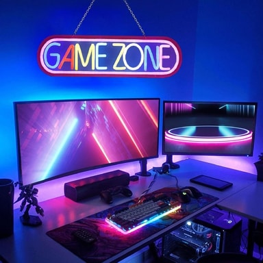 【Livfulla neoneffekter】Skapa en bländande spelrumsatmosfär med färgglada neonljus som ger liv och personlighet till rum.