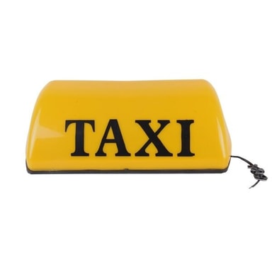 Kan användas för innerbelysning eller för att ersätta en gammal taxiskylt. Skylten kan blinka, lysa med jämn ljusstyrka eller hög ljusstyrka. Drivs av bilens elektricitet.