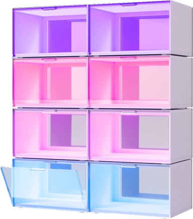 Ge din förvaring en rolig twist med Nanoleaf Expo Smart Display Case startpaket SQFX01K02-4WT. Dessa stapelbara lådor kan lysa i olika färger och har även en musikvisualiserare. De är kompatibla med smarta hem, vilket gör dem enkla att styra.Läs mer om produkten