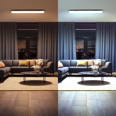 Med justerbar vit ambians kan du växla mellan varma och svala toner för att passa varje stund, starkt för fokus, mjukt för avkoppling. Panelen ger ett balanserat, bländfritt ljus som förbättrar komfort och atmosfär.
