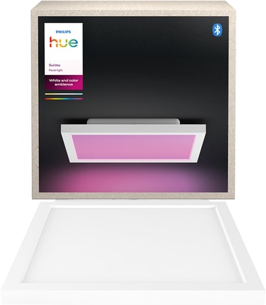 Philips Hue Surimu fyrkantig panel erbjuder miljontals färger. Den ger ett spektrum av färger från varmvitt till svalt dagsljus. Den är kompatibel med Philips Hue-appen och Philips Hue Bridge.Läs mer om produkten