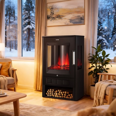 Denna elkamin skapar en otroligt realistisk kaminatmosfär med 3D-flameffekt och fejkved och -glöd. Sätt dig till rätta och betrakta den lugnande ""elden"" genom ett av de tre synsfönstren. Under förbränningskammaren finns dessutom ett stort vedfack där du kan stapla några riktiga vedträn för en ännu mer autentisk känsla.