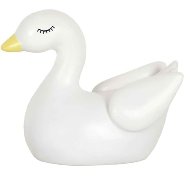 Bedårande söt nattlampa i form av en liten svan. Din lilla vän lyser upp i mörkret med ett mjukt och tryggt ljus. Lampan är batteridriven så du kan ha den i sängen utan att den blir varm.