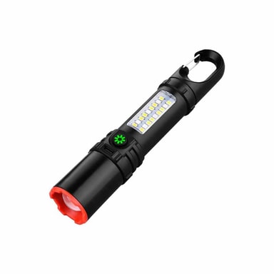 Portabel och handsfree design: Designad för ultimat bekvämlighet, är denna uppladdningsbara ficklampa kompakt och lätt, vilket gör den enkel att bära i fickan, ryggsäcken eller verktygslådan. Det integrerade fjäderclipset möjliggör handsfree-drift och fästs säkert på bälten, väskor eller annan utrustning. Perfekt för mekaniker som arbetar under en bil, campare som sätter upp tält eller någon som behöver båda händerna fria när de arbetar i svagt ljus, denna funktion förbättrar säkerheten och effektiviteten. Dess robusta konstruktion säkerställer att den tål utomhusbrukets påfrestningar, medan dess användarvänliga design gör den tillgänglig för användare i alla åldrar och färdighetsnivåer. Ta med dig den här ficklampan på ditt nästa äventyr och upplev friheten med handsfree-belysning.