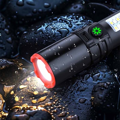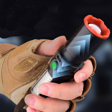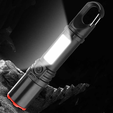 Mångsidiga belysningslägen: Denna multifunktionella starka LED-ficklampa har fem justerbara lägen som enkelt växlas med en enda knapptryckning, vilket tillgodoser olika belysningsbehov. Oavsett om du navigerar en mörk stig på en vandring, sätter upp läger i vildmarken eller står inför ett strömavbrott hemma, ger denna ficklampa den perfekta belysningsnivån. Dess zoomfunktion gör att du kan fokusera strålen för långdistansvisning eller bredda den för bredare områdesbelysning, vilket gör den till en idealisk följeslagare för alla situationer som kräver pålitligt och anpassningsbart ljus. Från intensiv punktbelysning för inspektioner till spritt ljus för läsning, erbjuder denna ficklampa oöverträffad mångsidighet.