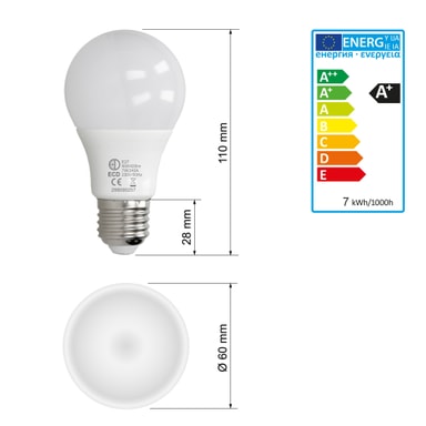 Omfattning av leverans: 7 x 7W E27 LED-lampa neutralt vitt Teknisk information: Märke / Modell: E27 LED-lampa Energieffektivitetsklass: A + Ljusstyrka: 420 lumen Konsumtionen i Watts: 7 W Vinkel: 270 ° Livet i timmar: 50.000 h .Färg: