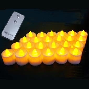 Batteridrivna led värmeljus med fjärrkontroll som du enkelt sätter på och av alla 24st på en gång, smart! Tack vare små led lampor i ljusen får man rätt många timmars ljus av ett batteridrivet ljus. Trivseln blir den rätta och man har verkligen fått till det lite fladdrande ljuset. Silikonlågan ger ett mycket varmt och trevligt ljus. Snygga varmvitt lysande värmeljus med deras stilla flämtande låga bidrar till en mysig stämning oavsett var du placerar dem. 24 stycken led-värmeljus med flimrande / flämtande / flammande låga och 1st remote ingår i paketet. Fjärrkontroll drivs av cr2032 batterier som ingår. Batterier till värmeljusen ingår med reducerad styrka för funktionskontroll av ljusen. (3st ag10 / lr1130 per ljus) för att nå full kapacitet och brinntid så rekommenderas 5st ag10-batterier per ljus. Tänk även på att sätta ljusen på """"off"""" under natten om dom inte används. Led-ljus som härmar värmeljus - naturtrogen flimrande ljuslåga. Batteridrivet värmeljus med led storlek: 3,7*3,8cm vackra och dekorativa ljus i varmvit färg med flammande effekt likt ett traditionellt ljus. Sköts enkelt med fjärrkontroll. Batteridrivna ljus är i jämförelse med vanliga värmeljus både brandsäkra och håller längre.