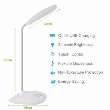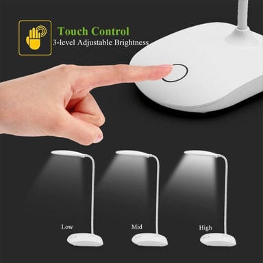 Dimbar bordslampa med touch-kontroll: Ljusstyrkan kan ställas in i 3 nivåer och anpassas efter dina behov, från arbetslampa eller läslampa till stämningsljus.