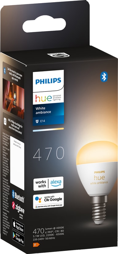 Skapa rätt stämning med Philips Hue White Ambiance 5.1W P45 E14. Beroende på dina preferenser kan du välja mellan olika nyanser av vitt och skapa den perfekta atmosfären för varje ögonblick. Dessutom kan du enkelt styra din belysning via en smartphone-app.