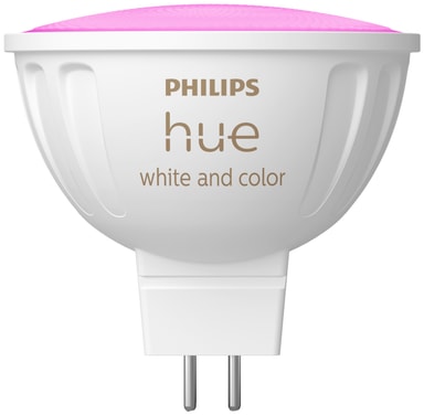 Philips Hue White and Color Ambiance MR16 LED-lampa 6.3 W kommer fylla ditt hem med flera nyanser av vitt. Den smarta glödlampan är dimbar och ger smidig kontroll via Philips Hue Bluetooth-app, röst eller Hue Bridge.Läs mer om produkten
