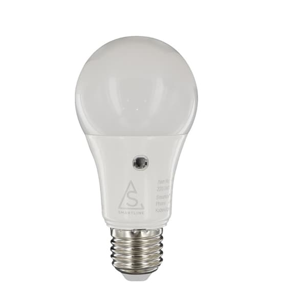 Sensorlampa led 8.5w e27 led-ljuskälla med e27-sockel och skymningsrelä. Automatiskt på/av vid skymning och gryning. 8.5w, 806lm, 2700k, ljusspridning 200°. Om lampan skuggas eller täcks med tonad kåpa kan det innebära att lampan förblir tänd längre mulna dagar. -varmvitt ljus -ip50