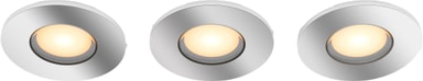 Lys upp ditt badrum med Philips Hue Adore infällda spotlightpaket. Detta paket innehåller tre justerbara 4,2-watts GU10-spotlights som erbjuder dimbart vitt ljus med varma färgtoner. Utformade med din bekvämlighet i åtanke är dessa spotlights IP44-klassade för säker användning i badrum och kan enkelt styras via Hue-appen, vilket gör att du kan rikta ljuset exakt där du behöver det.