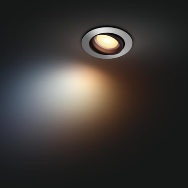 Philips Hue Milliskin infälld spotlight har en justerbar infällningsmontage för tak- eller vägginstallation och ger fokuserad, dimbar belysning. Styr enkelt det varm-till-kalla vita ljuset via Hue-appen för att skapa den perfekta stämningen för alla tillfällen.