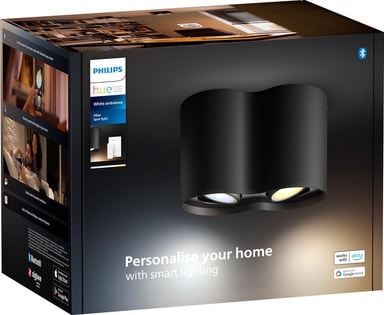 Skapa den perfekta stämningen med Philips Hue Pillar dubbelspotlight 2x4,2W GU10. Från varma till kalla vita toner ger dess justerbara huvuden dig total kontroll över din belysning. Använd Hue Dimmer-brytaren eller Bluetooth för att styra, och koppla ihop med en Hue Bridge för ännu fler smarta funktioner. GU10-lampa ingår!