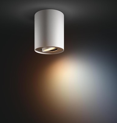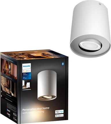 Philips Hue Pillar enkel spotlight 4,2W GU10 har ett flexibelt huvud som kan justeras från varma till kalla toner, medan Bluetooth och Hue Dimmer-switchar styr ljusstyrkan. Lås upp ännu fler funktioner genom att ansluta till en Hue Bridge.Läs mer om produkten