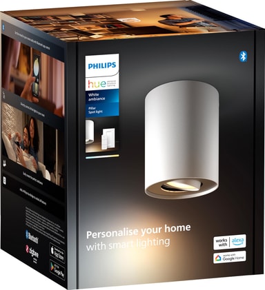 Skapa den perfekta stämningen med Philips Hue Pillar spotlight 4,2W GU10. Från varma till svala vita, dess justerbara huvud ger dig total kontroll över din belysning. Använd Hue Dimmer-omkopplaren eller Bluetooth för att hantera och koppla ihop med en Hue Bridge för ännu fler smarta funktioner. GU10 glödlampa ingår!