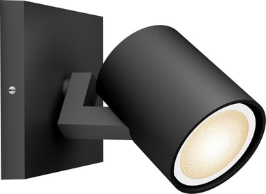 Philips Hue Runner enkelspotlight 4,2W GU10 i svart, med ett justerbart huvud, låter dig anpassa ljuset från varmt till kallt vitt. Hantera inställningar via Hue Dimmer-omkopplaren eller Bluetooth och njut av extra funktionalitet när den paras ihop med en Hue Bridge.