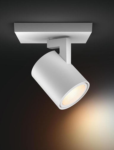 Philips Hue Runner enkelspotlight 4,2W GU10 i vitt, med ett justerbart huvud, låter dig anpassa ljuset från varmt till kallt vitt. Hantera inställningar via Hue Dimmer-omkopplaren eller Bluetooth och njut av extra funktionalitet när den paras ihop med en Hue Bridge. Spotlighten kommer med en GU10-lampa.