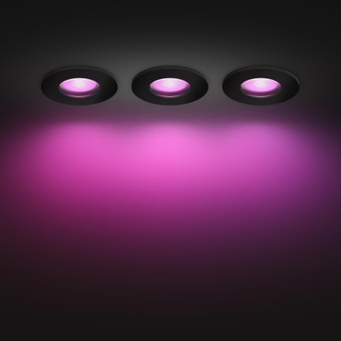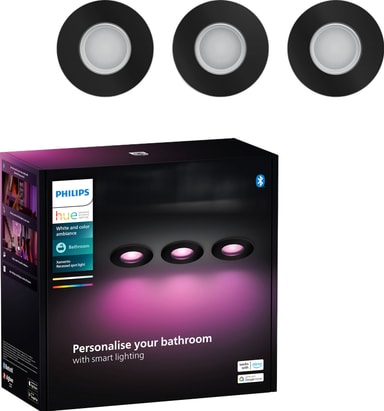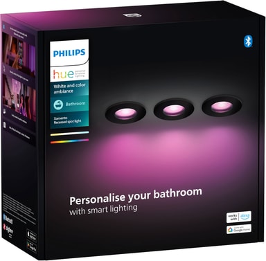 Lys upp ditt badrum med Philips Hue Xamento infällda spotlights. Detta paket med 3 justerbara 4,2-watts GU10-spotlights erbjuder dimbart vitt och färgat ljus, har IP44-klassificering för vattenbeständighet och kan styras via Hue-appen.Läs mer om produkten