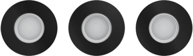 Philips Hue Xamento infällda spotlights-paket innehåller 3 justerbara 4,2-watts GU10-spotlights som erbjuder dimbart vitt och färgat ljus. Dessa spotlights är IP44-klassade, vilket gör dem säkra för användning i badrum. Du kan enkelt styra belysningen via Hue-appen och rikta ljuset dit det behövs.