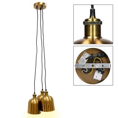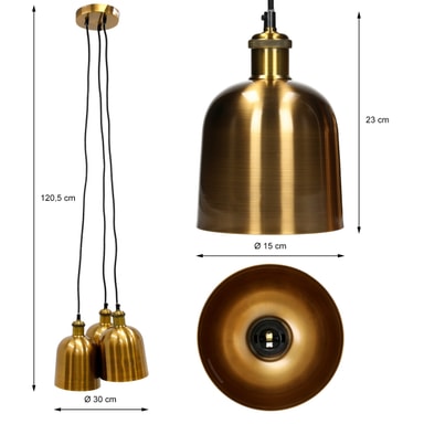 Produktbeskrivning:Denna eleganta taklampa från ECD Germany ger vintage charm till ditt hem. Lampan i industriell design med sina tre pendlar i gammalt guld ger ett ädelt utseende.Läs mer om produkten